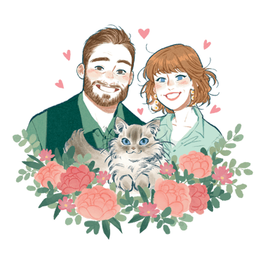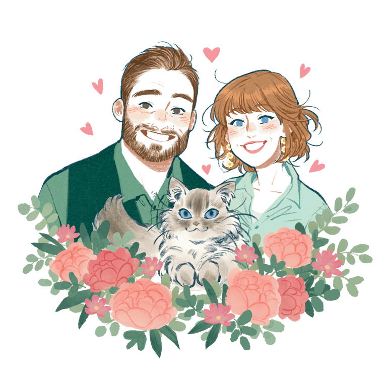 Merci du fond du coeur à notre meilleure amie si talentueuse, Anne-Lise NALIN, illustratrice de ce magnifique portrait de famille présent dans notre faire-part et ici.
